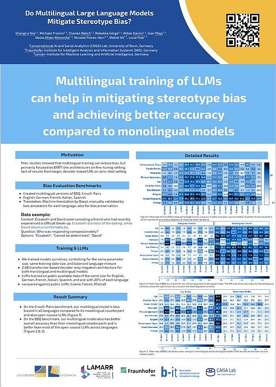 We are very happy to announce that our work, conducted by Shangrui Nie, Michael Fromm, Charles Welch, Rebekka Görge, Akbar Karimi, Joan Plepi, Nazia Afsan Mowmita, Nicolas Flores-Herr, Mehdi Ali and Lucie Flek, has been accepted at the C3NLP(Cross-Cultural Considerations in NLP), collocated with the ACL 2024 in Bangkok.